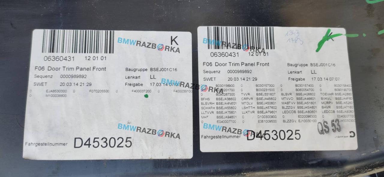 Обшивка двери передней правой BMW 6 F12/F13 рест. F06 2015