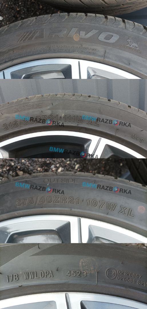 Оригинальные литые диски R21 BMW 741 M стиль с вылетом ЕТ37 (9,5*21) / ЕТ43 (10,5*21) с летними шинами 275/40/21 и зад 315/35/21, 23 год выпуска